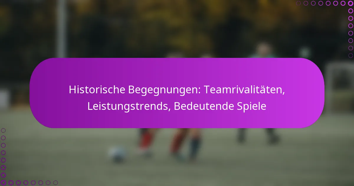 Historische Begegnungen: Teamrivalitäten, Leistungstrends, Bedeutende Spiele