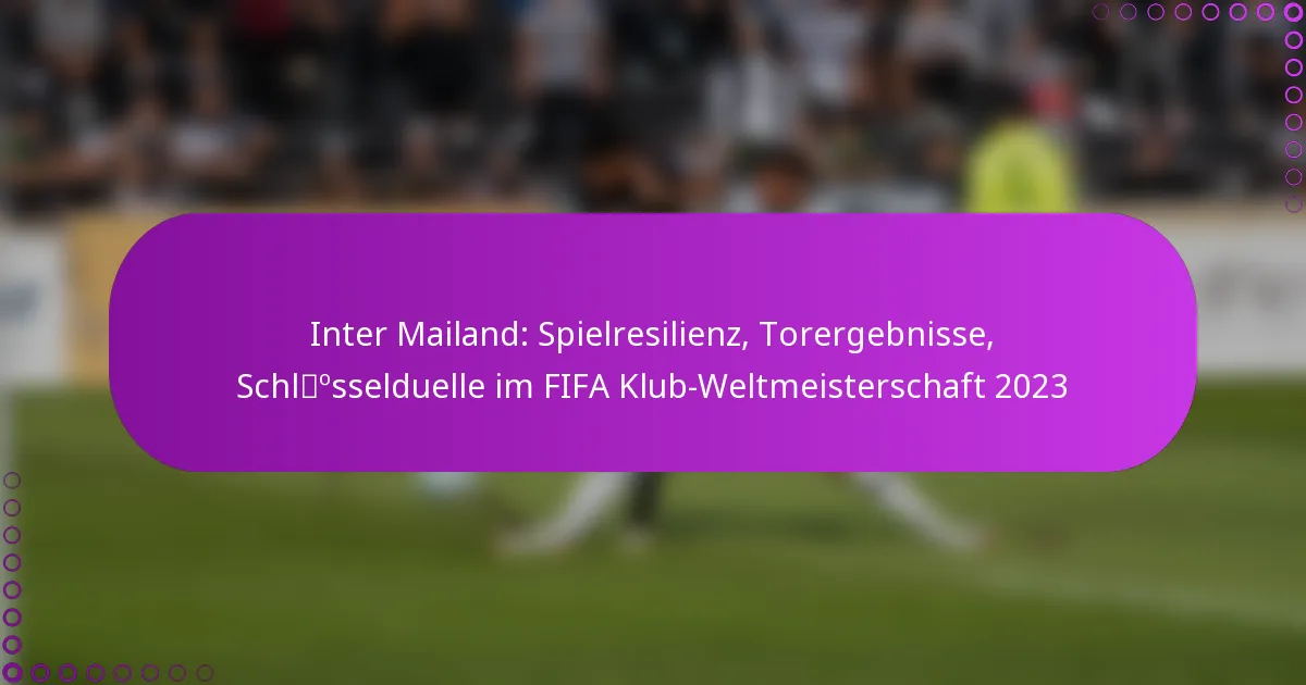 Inter Mailand hat im FIFA Klub-Weltmeisterschaft 2023 bemerkenswerte Spielresilienz gezeigt, indem sie sich effektiv aus herausfordernden Situationen zurückgekämpft haben, um wichtige Siege zu sichern. Ihre Torerfolge spiegeln eine strategische Anpassungsfähigkeit wider, wobei verschiedene Torarten und wichtige Spielerbeiträge ihre Offensivfähigkeiten verbessern. Darüber hinaus werden entscheidende Begegnungen mit Spieler-Konfrontationen und taktischen Aufstellungen ihre Leistung erheblich beeinflussen, während sie sich durch das Turnier navigieren.